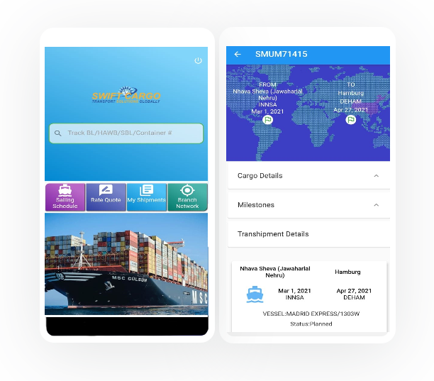 Track all your shipments live on our mobile application -
